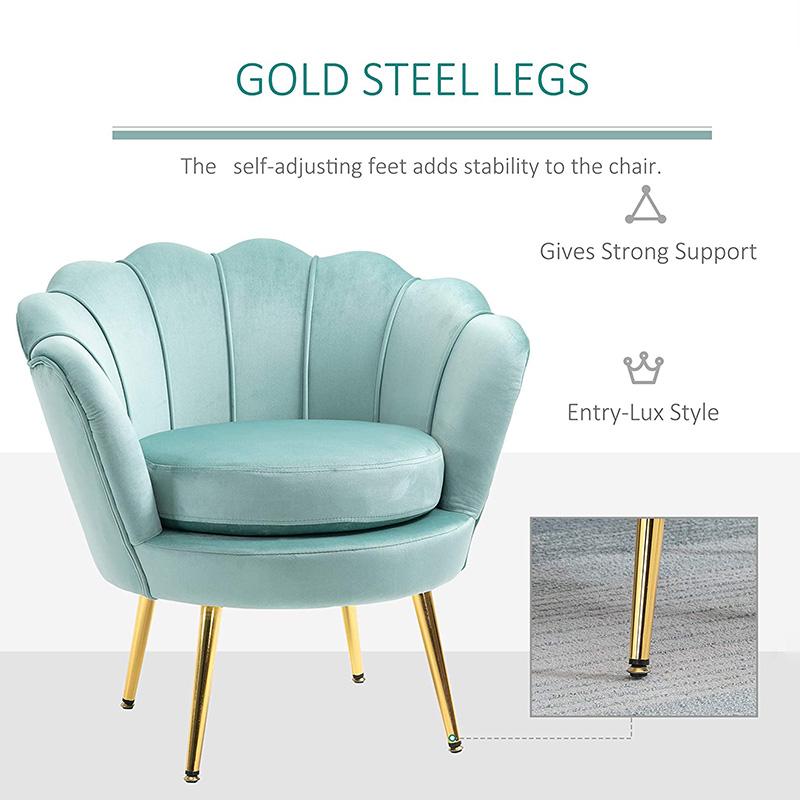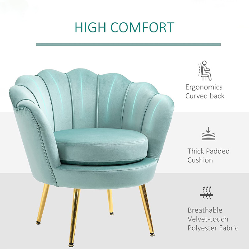 Lotus-shaped Velvet Fabric Accent Chair Living Room Arm Chair with Cushion